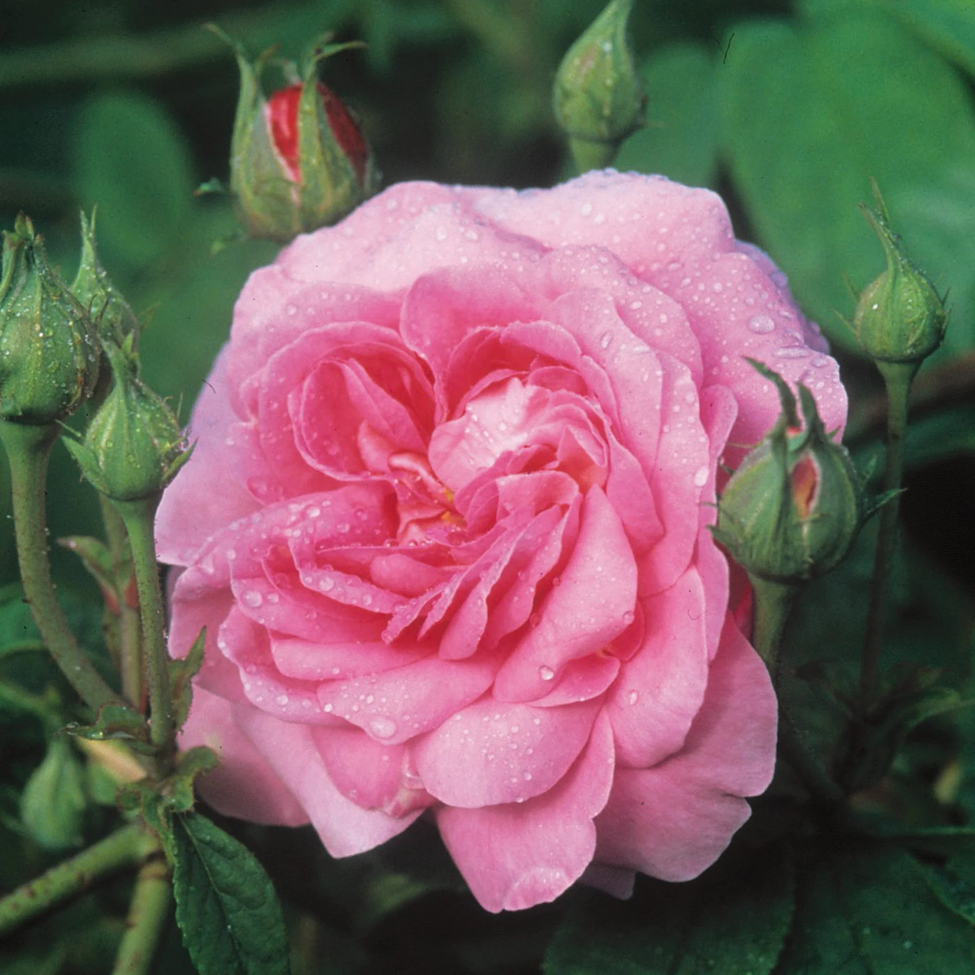 Exquisite half-open blooms of lovely mid pink, open to form loosely reflexed flowers. It is always one of the first of the Summer Flowering Old Roses to bloom and has a strong and particularly fine Old Rose fragrance. Unknown, c.1832.